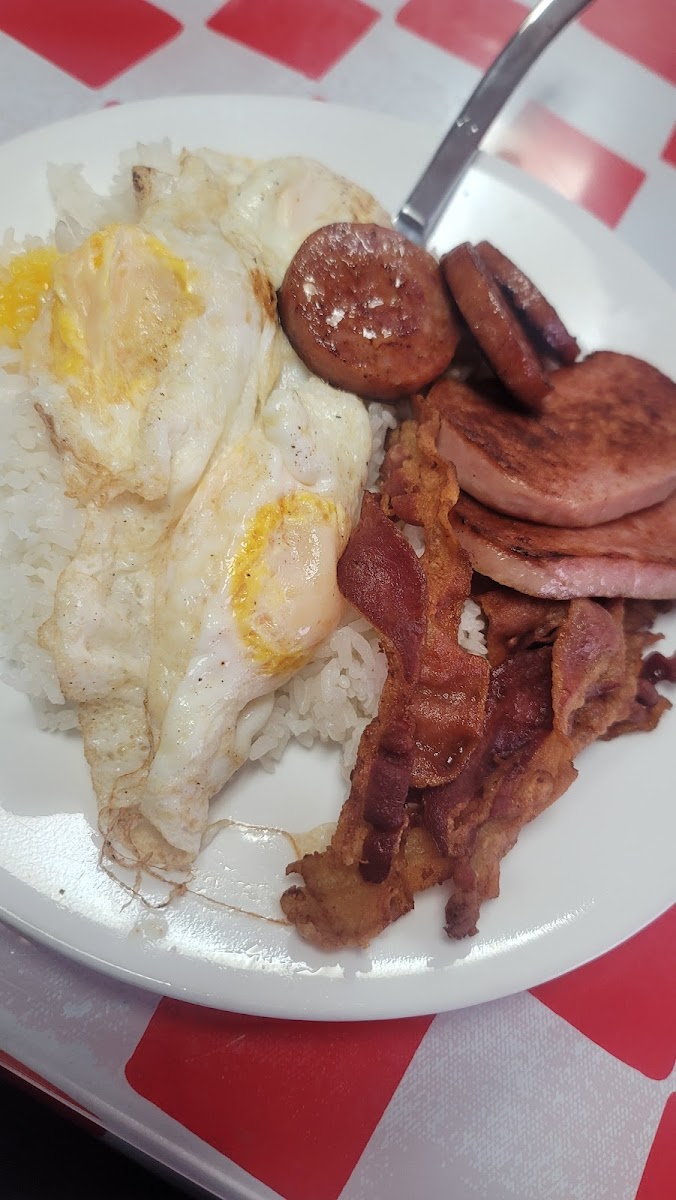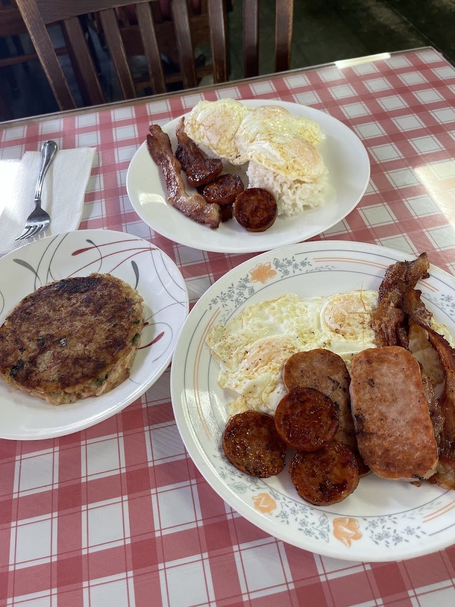 The menu centers on familiar Hawaiian breakfast staples like corned beef hash loco moco, Portuguese sausage with egg fried rice, and generous portions of pancakes and French toast. For those seeking something savory, the roast beef loco moco or kalbi steak with eggs stand out as satisfying options. Portions tend toward generous, with homemade gravies and sauces that many locals appreciate for their down-to-earth flavors.